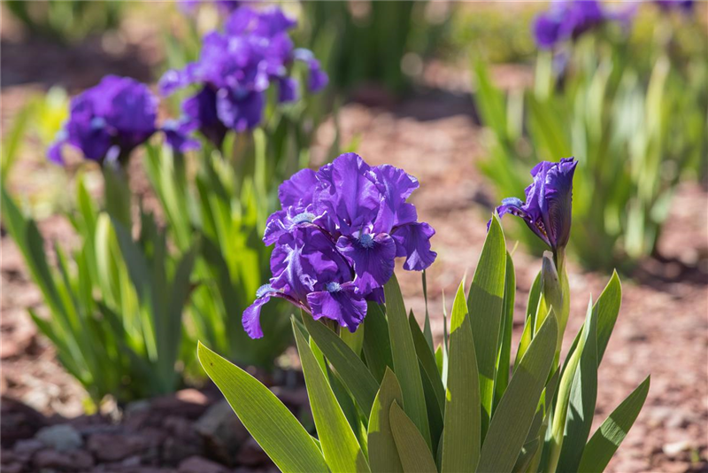 Die Iris ist eine Blume mit tausend Gesichtern, wobei jedes von ihnen zu lächeln scheint. Bei der Fülle des Angebots ist natürlich auch etwas für den Steingarten dabei. Dabei muss sie nicht alle anderen Pflanzenmitglieder an Höhe überragen. Eine Zwergiris ist beispielsweise wundervoll mit Phlox kombinierbar. Botanische Teppiche aus Blaukissen vervollständigen das Bild.