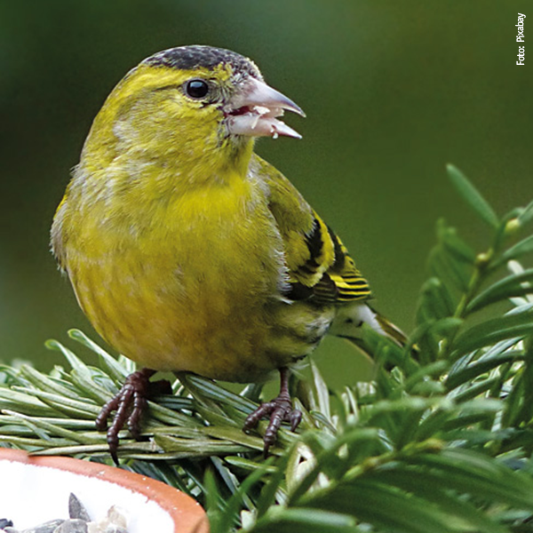 7. Für Vögel, die lieber am Boden auf Futtersuche gehen, gibt es spezielle Futterautomaten. Wenn Sie dennoch Futter ausstreuen, verlegen Sie die Bodenfütterungsbereiche häufiger, um ein Verschmutzen und Anstecken mit Krankheiten zu vermeiden.
