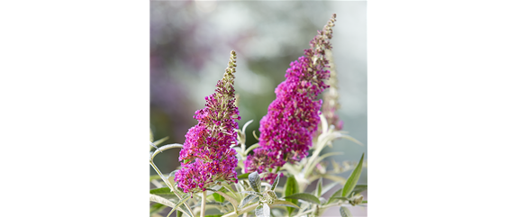 Der Sommerflieder (Buddleja) ist der bekannteste Blütenstrauch, um Schmetterlinge anzulocken. Daher wird er im Volksmund auch Schmetterlingsflieder genannt. Während seiner Blütezeit von Juli bis Oktober können zahlreiche Schmetterlingsarten wie Tagpfauenauge, Admiral oder Kleiner Fuchs beim Nektartrinken beobachtet werden. Seine bis zu 30 cm langen Blütenrispen duften süß honigartig und leuchten in Weiß, Rosa- und Rottönen bis hin zu Lila und Blau. Er gedeiht am besten an einem sonnigen Standort mit trockenem, durchlässigen Boden. Besonders stilvoll wirkt der Sommerflieder, wenn Sie ihn mit verschiedenen Stauden, Rosen oder auch Gräsern kombinieren. Durch die variierenden Blütenformen und -farben entstehen wunderbare Kontraste.