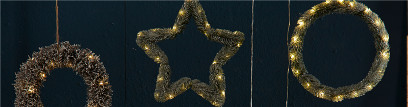 In der Weihnachtszeit darf das Zuhause mit leuchtenden Hängedekorationen in unterschiedlichen Formen und Farben ruhig ein wenig überladen sein. Es gibt z.B. Hängekränze in runder Form, in Sternenform, dünner oder etwas mächtiger. Sie können auch bei den Leuchtmitteln selbst wählen: Warmweiß wirkt leicht gelblich bis rötlich und erinnert ein wenig an einen Sonnenuntergang.