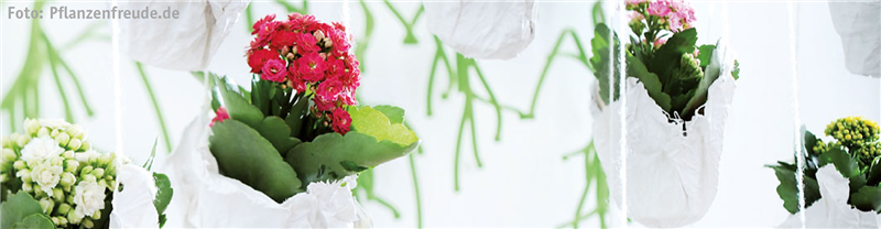 Ein guter Partner für hängende Töpfe ist die pflegeleichte Kalanchoe, oder auch Flammendes Käthchen (Kalanchoe blossfeldiana) genannt, mit ihren unzählig schönen Miniblüten. Sie ist die ideale Blühpflanze für Mütter, die nicht so viel Zeit für die Pflege haben.