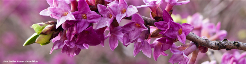 Der Echte Seidelbast (Daphne mezerum) ist ein heimischer Strauch, der meist eine Höhe von einem Meter oder etwas darüber erreicht. Der Strauch blüht im Frühjahr mit duftenden rosa-roten Blüten. Im August bis September entwickeln sich leuchtend rote Beeren, die zwar schön, aber sehr giftig sind.