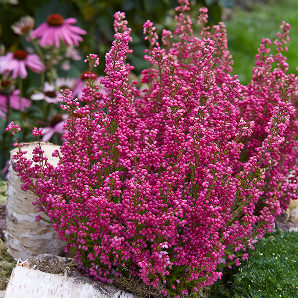 Heidepflanzen gibt es in einer Vielzahl verschiedenster Sorten und Arten, die mit grünem oder auch buntem Laub und Blüten in verschiedenen Violett-, Rot- und Rosatönen bis hin zu Weiß aufwarten. Die meisten von ihnen blühen im späten Sommer. So zum Beispiel die fälschlicherweise als “Erika” in deutschen Schlagern bereits viel besungene Besenheide, botanisch “Calluna vulgaris”. Sie sehen im blühenden Zustand herrlich aus, doch leider währt die Blühzeit nicht allzu lange. Deshalb gibt es neuerdings immer mehr Sorten, deren Knospen sich nicht oder erst ganz spät öffnen (zum Beispiel Knospenblüher wie die 'Garden Girls'). Ihre Blüte dauert wochenlang, in milden Wintern bis zum beginnenden Frühling - das ist ideal für die Verwendung im Garten, in Gefäßen und in Töpfen.