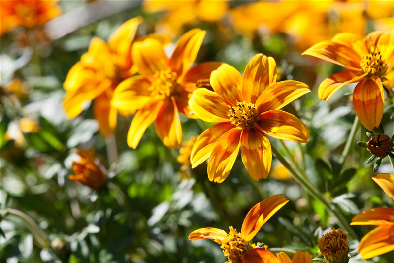 Den Namen Zweizahn hat der Bidens übrigens vom Aussehen der zweizähnigen Samen. Die gelben Blüten der Goldmarie erinnern ein wenig an Margeriten, sind aber deutlich kleiner. Ursprünglich in Nord- und Mittelamerika beheimatet, blüht der Zweizahn von Frühsommer bis Herbst.