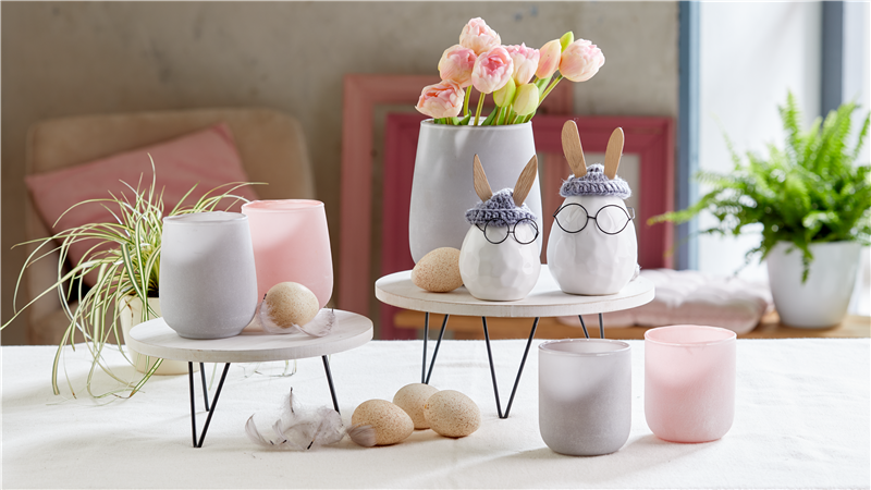 Windlichter in zarten Farben und passende Hasen schmücken Ihr Zuhause auf eine elegante Art und Weise und unterstreichen den Frühlingszauber in Ihren eigenen vier Wänden.