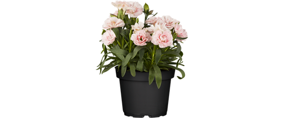 Die Gartennelke kommt z.B. neben Pfingstrosen (Paeonia) sehr gut zur Geltung.