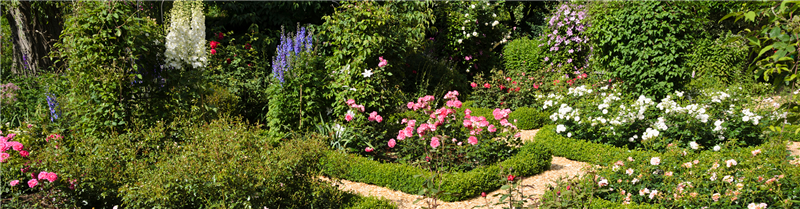 Die passenden Begleitpflanzen für Rosen können farblich passend Ton in Ton oder in Verbindung mit zarten Pastelltönen gewählt werden. So schmeicheln sie den Rosenblüten besonders und unterstreichen ihre romantische Wirkung. Aber auch mit schönen farblichen Kontrasten wie zum Beispiel rot-weiß-violett oder auch weiß-gelb – mit weißen Rosen und gelben Stauden wie Mädchenauge, Mittagsgold oder der Kokardenblume – entsteht eine tolle ausdrucksstarke Bepflanzung. Um auch Insekten anzulocken, lohnt es sich bei der Wahl der Rosen und auch der Begleitpflanzen, zu ungefüllten Blüten zu greifen, da Bienen und Hummeln hier mehr Nahrung finden.