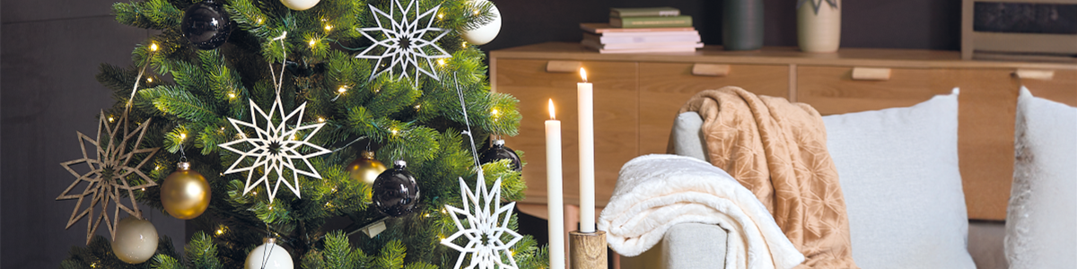 Früher wurden Weihnachtsbäume mit roten Äpfeln verziert, heute haben Weihnachtskugeln ihren Platz eingenommen. Sie sind dabei in Material, Form und Farbe so vielfältig, dass für jeden Geschmack etwas dabei ist. Schwarz-matt lackierte Weihnachtskugeln sorgen für eine Extraportion Eleganz im Weihnachtstrend „Cosy Moments“. In Kombination mit natürlichen Materialien wie Tannenzweigen oder Tannenzapfen bilden sie ein stilsicheres Arrangement.