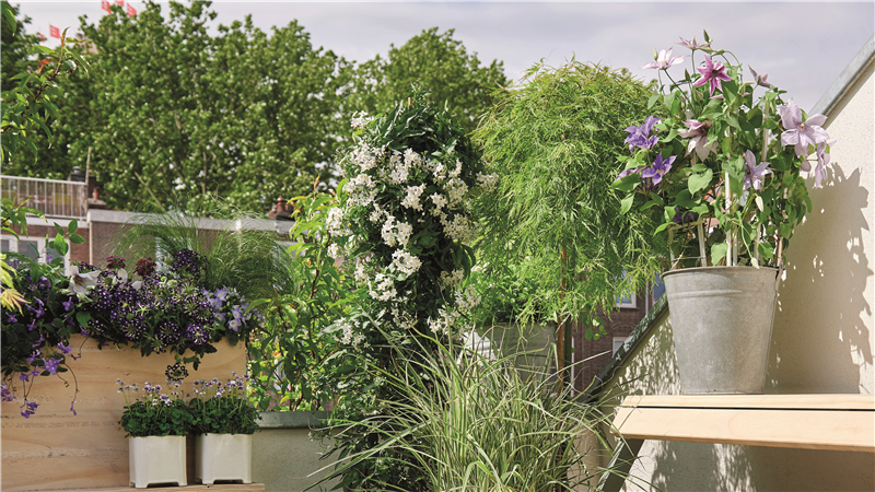 Passende Pflanzen und Accessoires sorgen für eine Wohlfühlatmosphäre auf Terrasse und Balkon. Mit einem geschickten Mix aus Büschen, Stämmchen und Hängepflanzen entsteht Ihr neuer Lieblingsplatz.