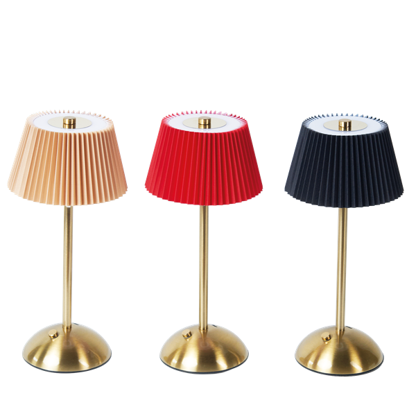 Diese LED-Tischlampen verbinden klassisches Design mit moderner Technik. Ein plissierter Schirm in Creme, Rot oder Schwarz trifft auf einen goldfarbenen Fuß und wirkt dadurch besonders elegant. Dank integriertem Akku und USB-C-Anschluss sind die Lampen flexibel einsetzbar: auf dem festlich gedeckten Tisch oder als stimmungsvolle Beleuchtung im Eingangsbereich. Wiederaufladbar und kabellos bringen sie warmes Licht dorthin, wo es gebraucht wird.