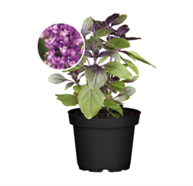 STRAUCHBASILIKUM (Ocimum basilicum) wächst kompakt, verzweigt sich stark und begleitet die Saison oft länger als klassisches Basilikum. Durch regelmäßiges Ernten entwickelt sich eine stabile, strauchige Form, die im Topf besonders attraktiv wirkt.