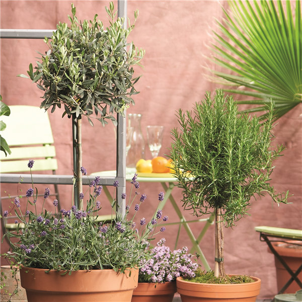 Das ROSMARIN-STäMMCHEN (Salvia rosmarinus) bringt mit seinem aromatischen Laub sofort mediterrane Stimmung ins Spiel. Schon eine leichte Berührung setzt den typischen Duft frei und erinnert an warme Tage im Süden. Die natürlichen ätherischen Öle